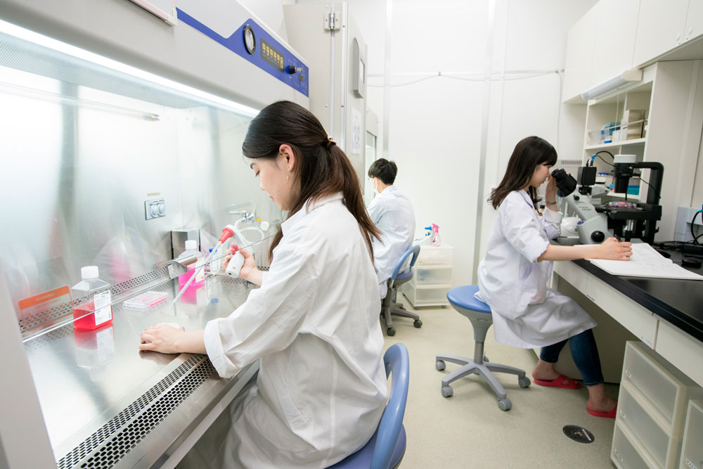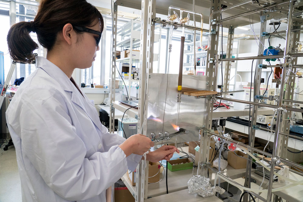 2011年に完成した6階建て免震構造の校舎です。この校舎では、1年生の基礎化学実験、2・3年生の応用化学実験、および4年生の各研究室への配属後の実験などが行われており、応用化学科に入学後は多くの時間を過ごすことになります。