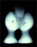 などの間接的な証拠が挙げられている。(写真:土偶のX線写真と分割塊作成法/山梨県釈迦堂遺跡博物館)