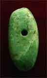 1983)。(写真:ヒスイ製大珠/晩期/山梨県金生遺跡/大泉村歴史民俗資料館)