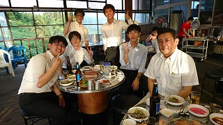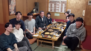 - 電子情報通信学会OCS研究会(宮崎)において、山田君と金谷君が研究成果を発表。写真は現地での壮行会(宮崎牛(鉄板焼き))。