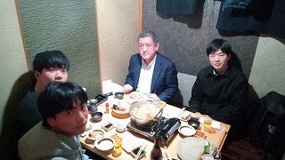 - 新ゼミ生の歓迎会。OBも二人参加してくれました。