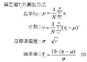 (3)各人の偏差値を求めて,名前と偏差値を画面に表示しなさい。
