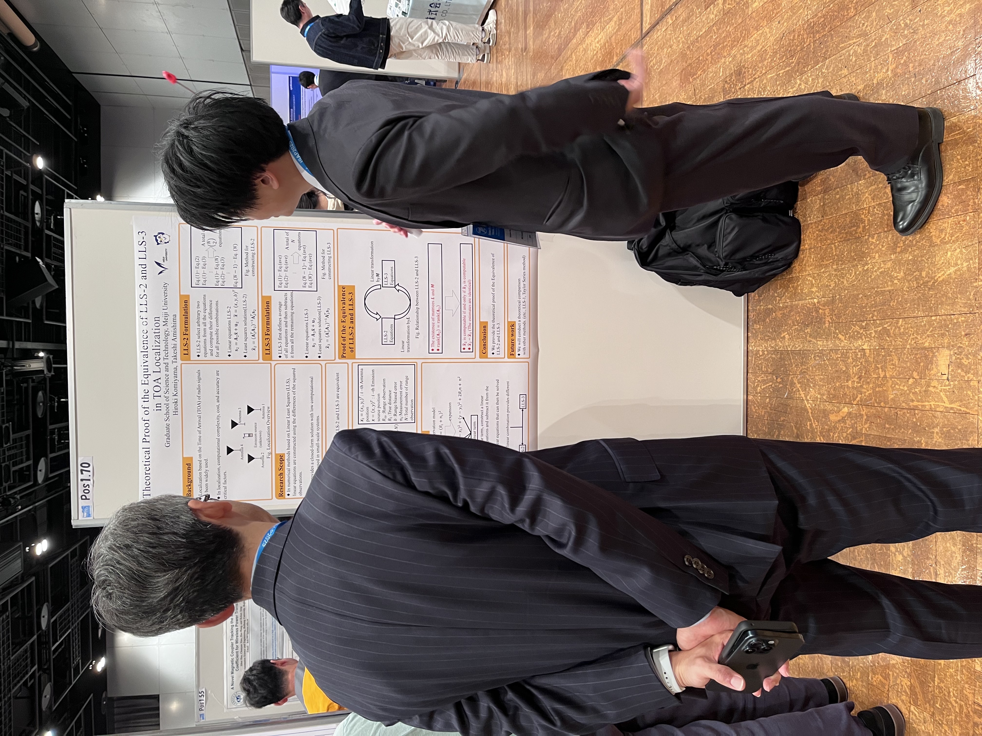 2025/5/23に大学院1年生の小宮山弘樹さんが測位航法学会全国大会で「距離バイアス誤差を同時推定するLinear Least SquaresによるTOA測位」という題目で発表を行いました。 様々な議論をすることができ、とても有意義な時間になりました。