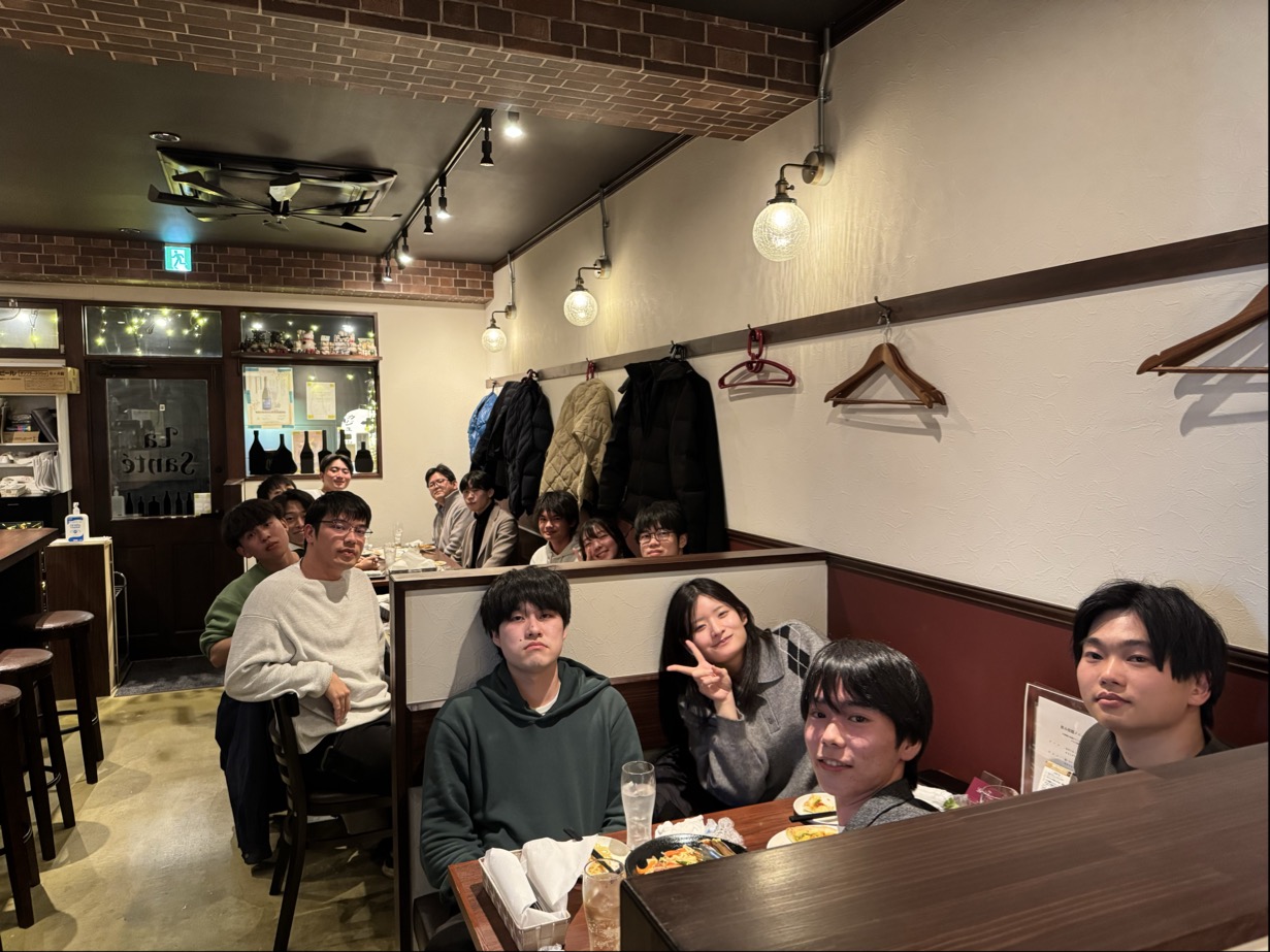 2024/12/29にお疲れ様会を行いました。去年の卒業生と久しぶりの再会をしました。社会人の大変さや今の研究室の様子などお互いに刺激を受ける良い機会となりました。