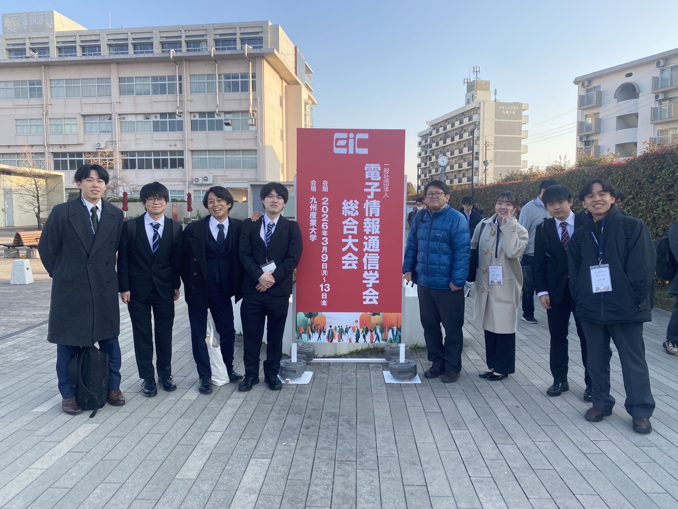2026/2/19に大学院2年生の荒尾さん、村松さん、安田さんが修論発表を行いました。 M2の3名は本研究室の立ち上げメンバーであり、創設時から3年間、先頭でより良い研究室へと導いてきてくれました。 発表は緊張感がある中、3年間の集大成にふさわしい、とても素晴らしいものでした。