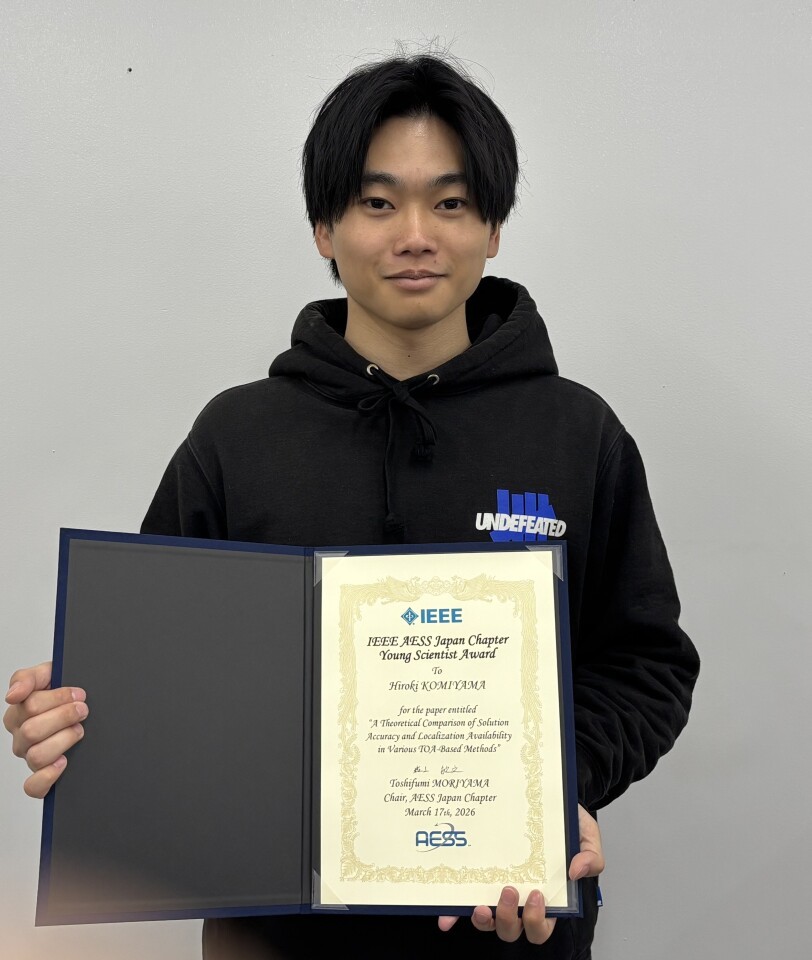 小宮山弘樹さん(博士前期課程1年・網嶋研究室)が、IEEE AESS Japan Chapter 学術奨励賞を受賞しました。