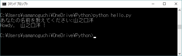python言語は、WindowsデスクトップというGUI(グラフィカルユーザインタフェース)の世界ではなく、コマンドプロンプトというCUI(キャラクタユーザインタフェース)の世界で動作する。これはWindowsの前身である「MS-DOS」というCUIベースのOSの名残だが、実は現在のWindowsも基底レベルではここで動作している。いわばWindowsの奥の院である。図0-1に、コマンドプロンプトの画面を示す。これは、入門コースで最初に学んだ「hello.py」を実行したところだ。