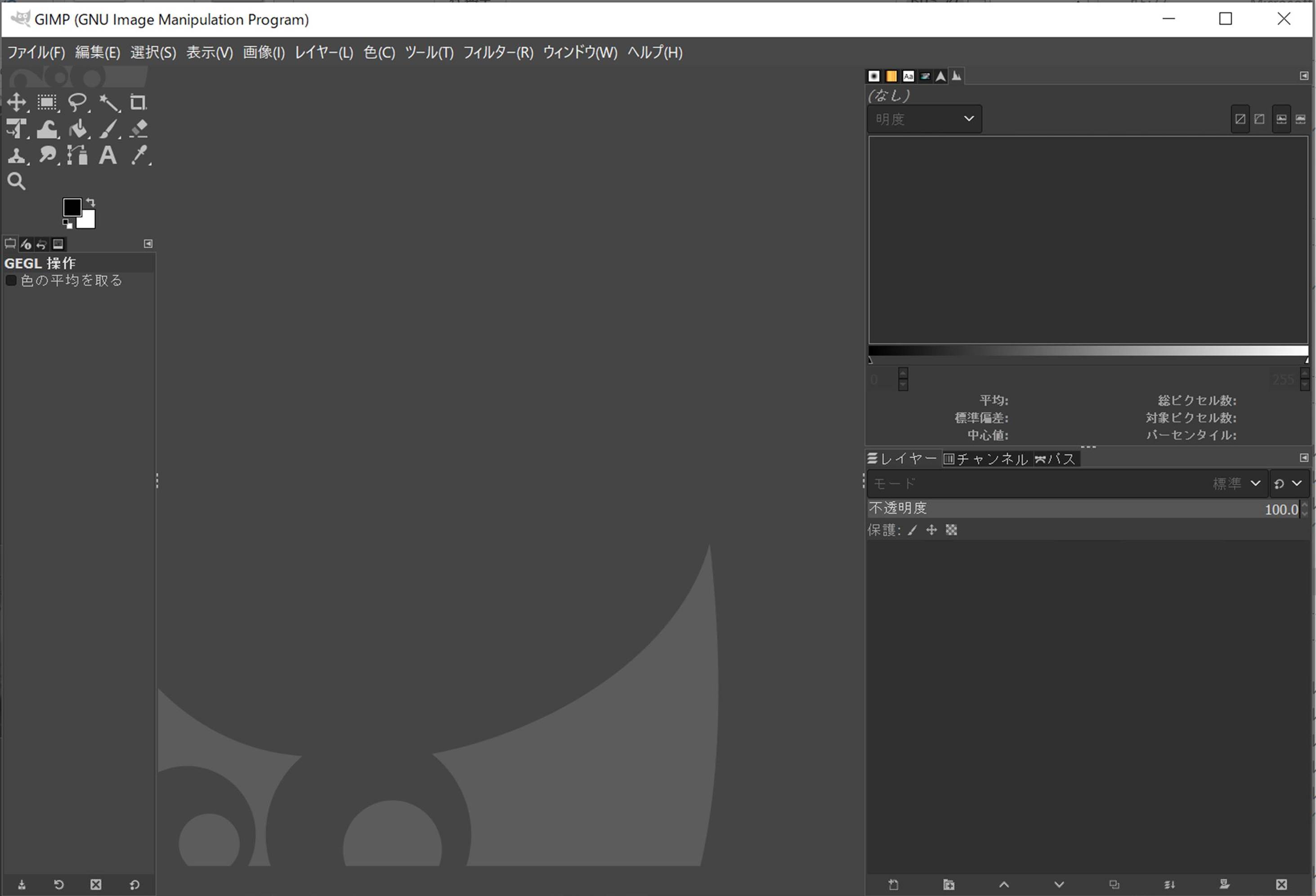 1) まずは,GIMPを起動します. (説明画面はGIMP 2.10.20を用いています。)