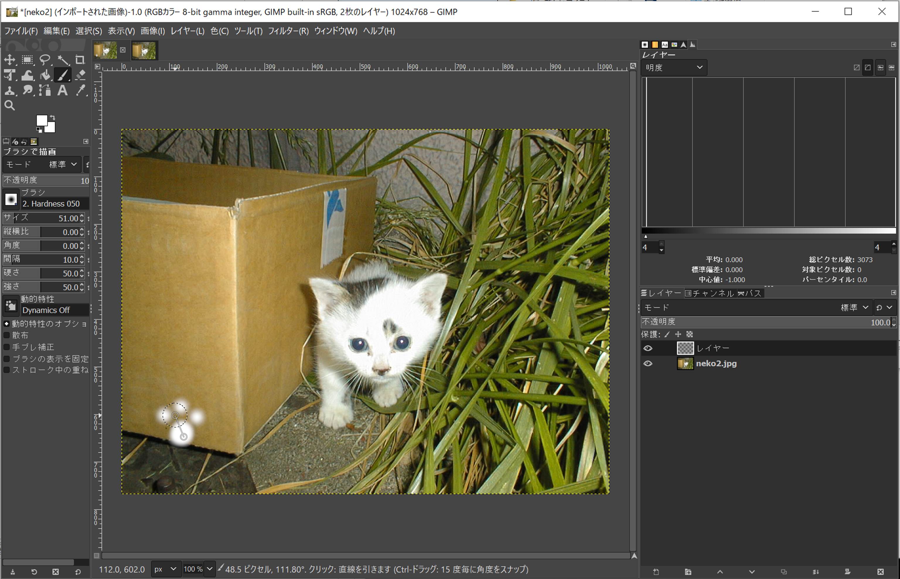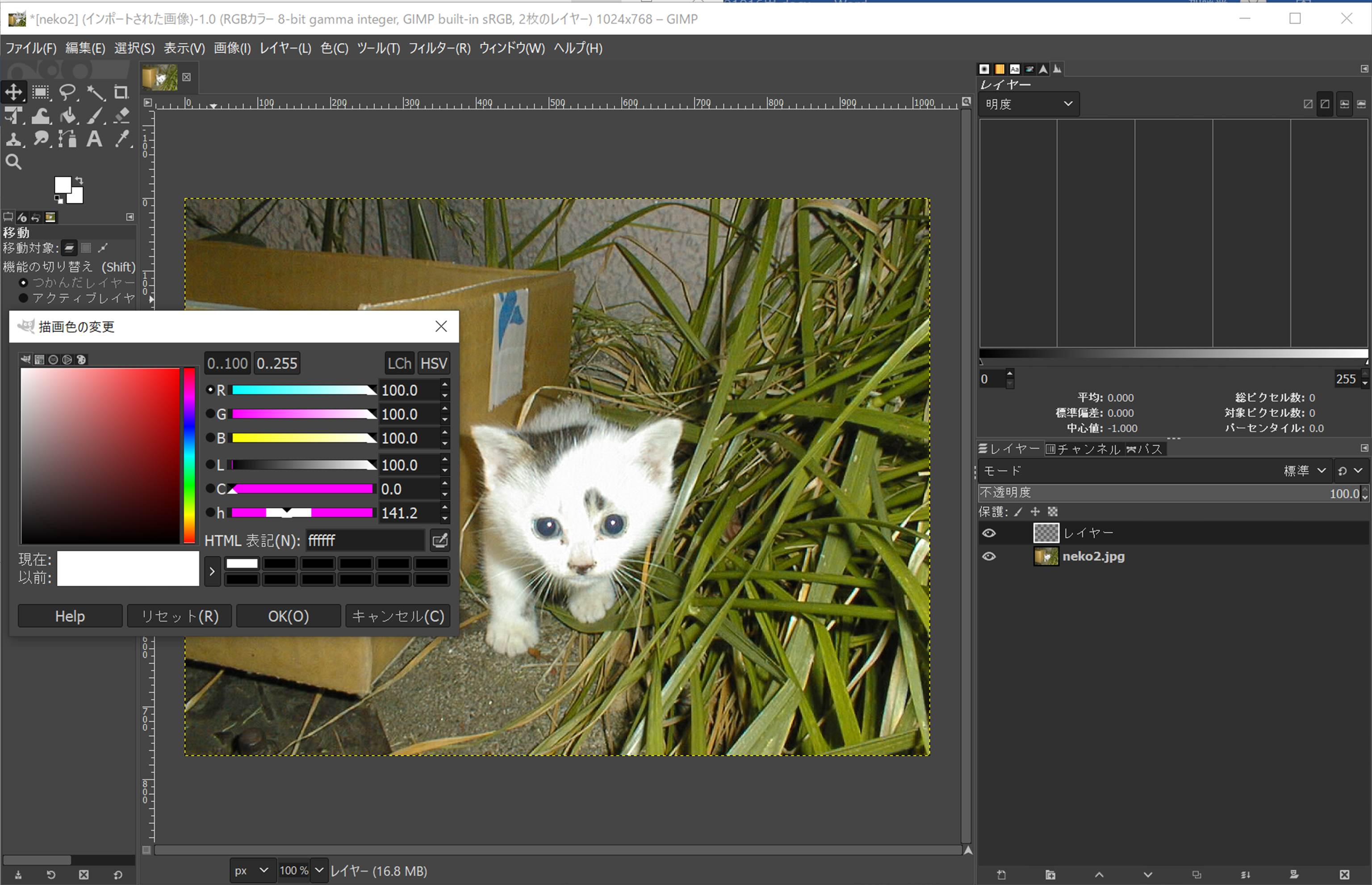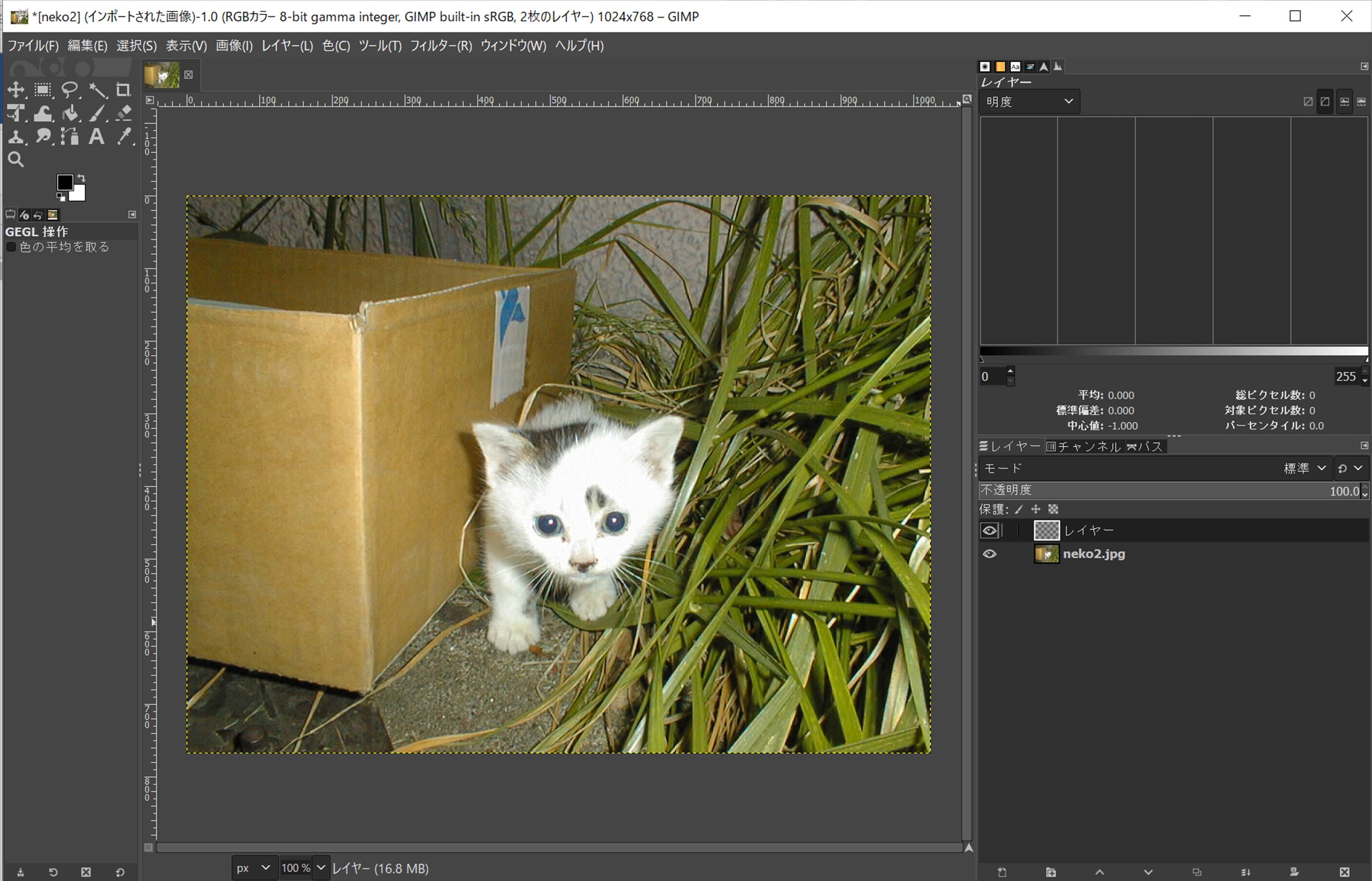 neko2.jpg: 1024×768×24bit:169kbyte(画像に使用されているメモリではなく,ファイルの容量)