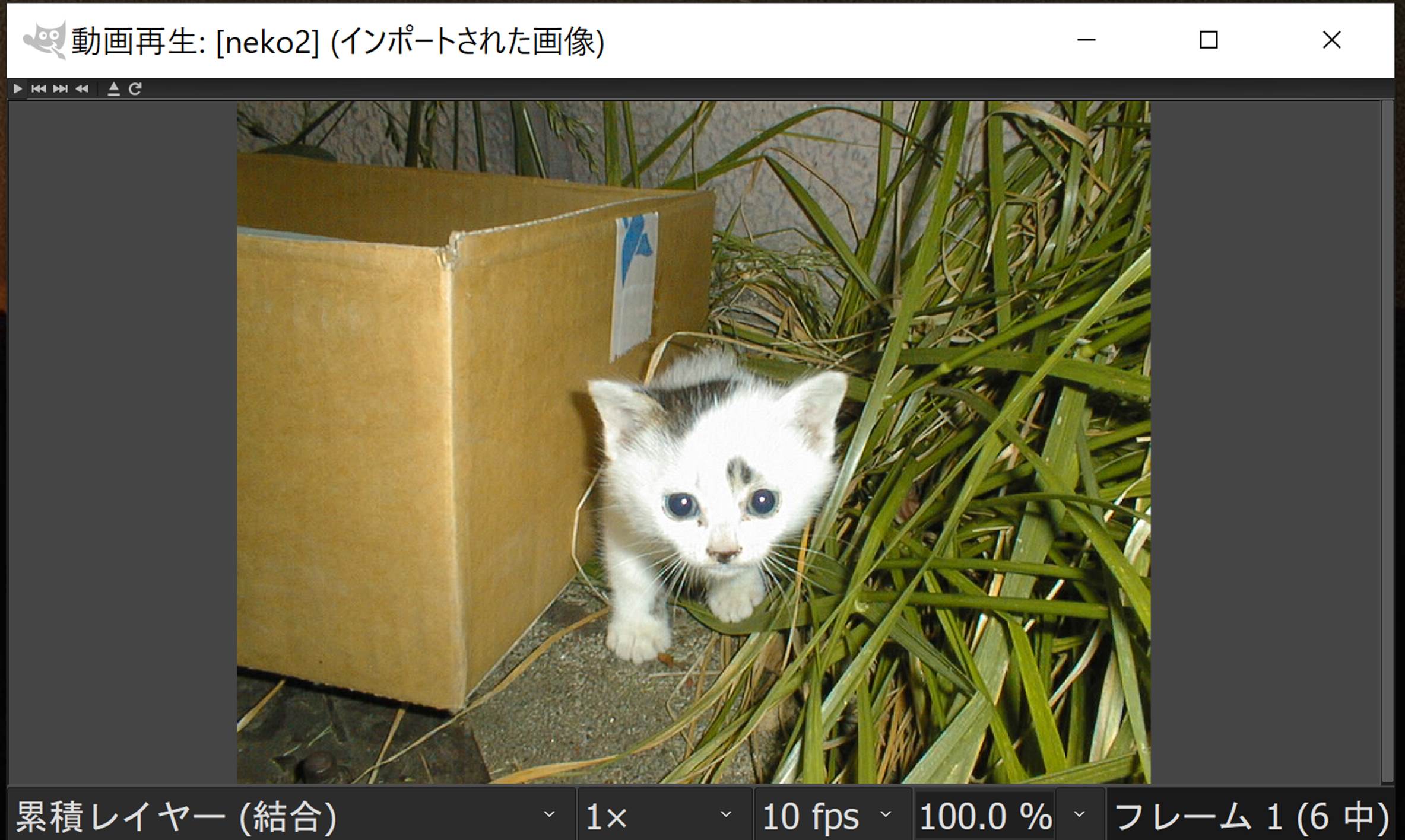 ここで、下に示された「累積レイヤー」を「レイヤー毎に1プレーム」とするとフレーム毎に表示されるようになります。