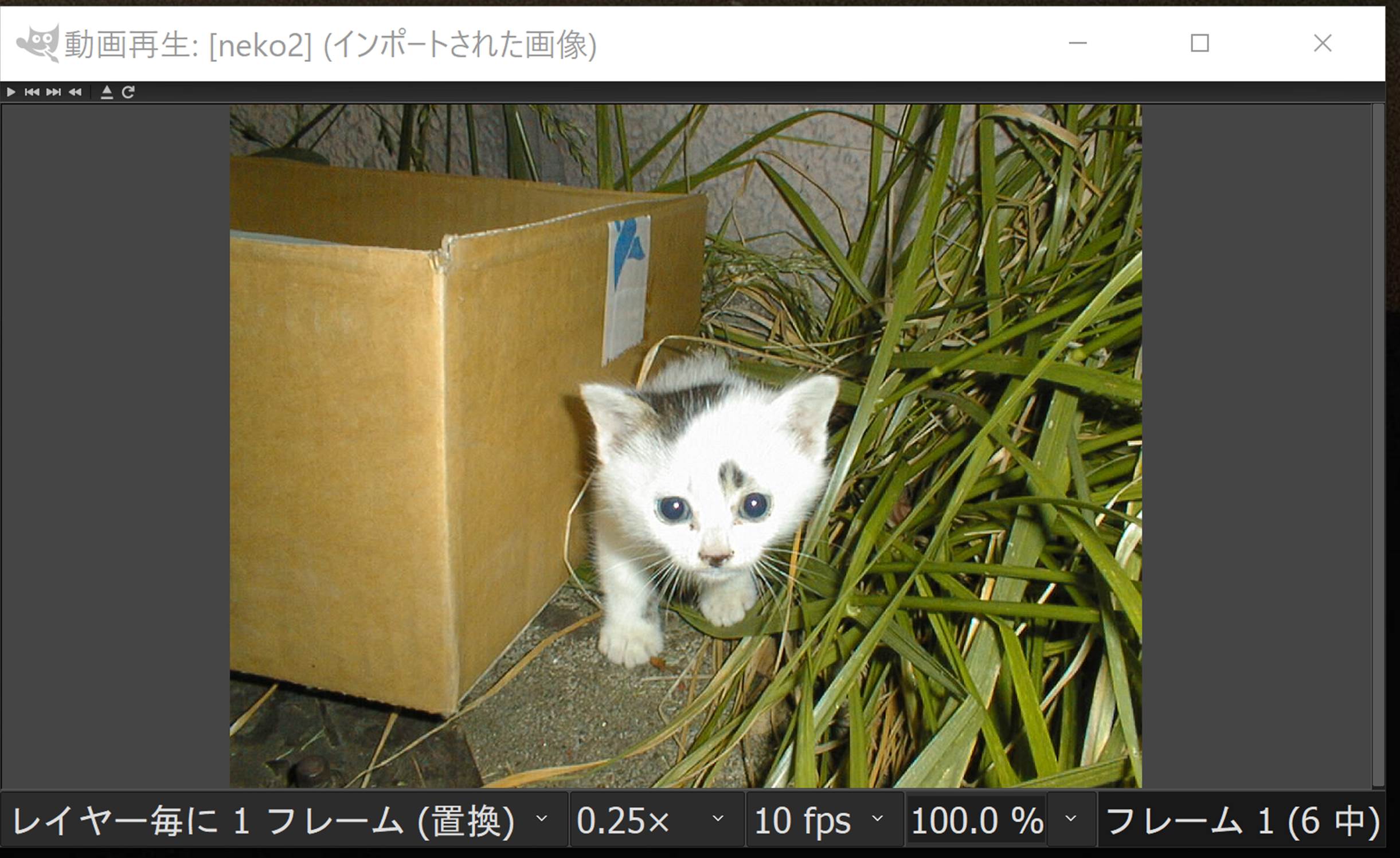 「1×」というのは、その横の「10fps」が、1秒間に10フレームの速さであることの1倍であることをさしており、「0.5×」にすれば、遅くなります。