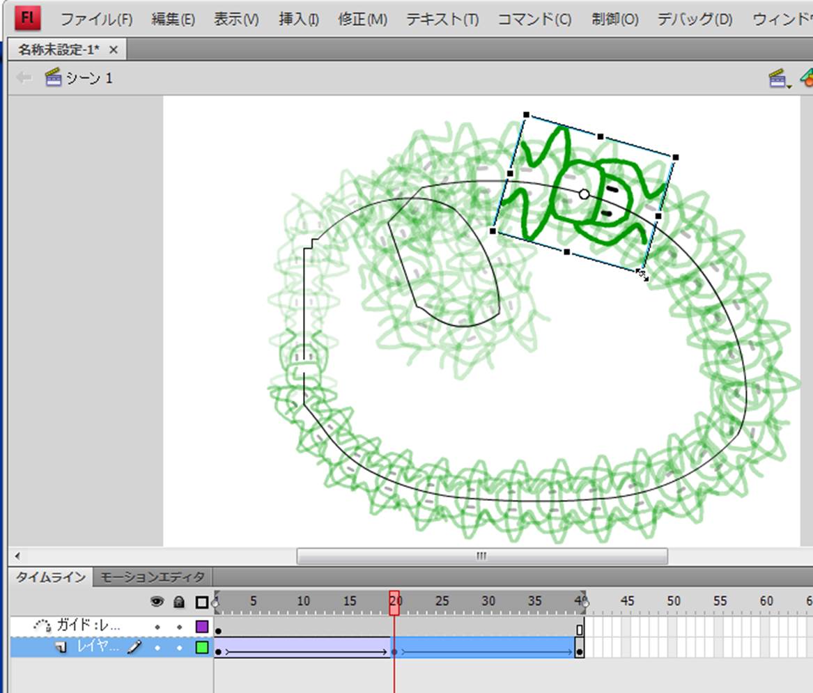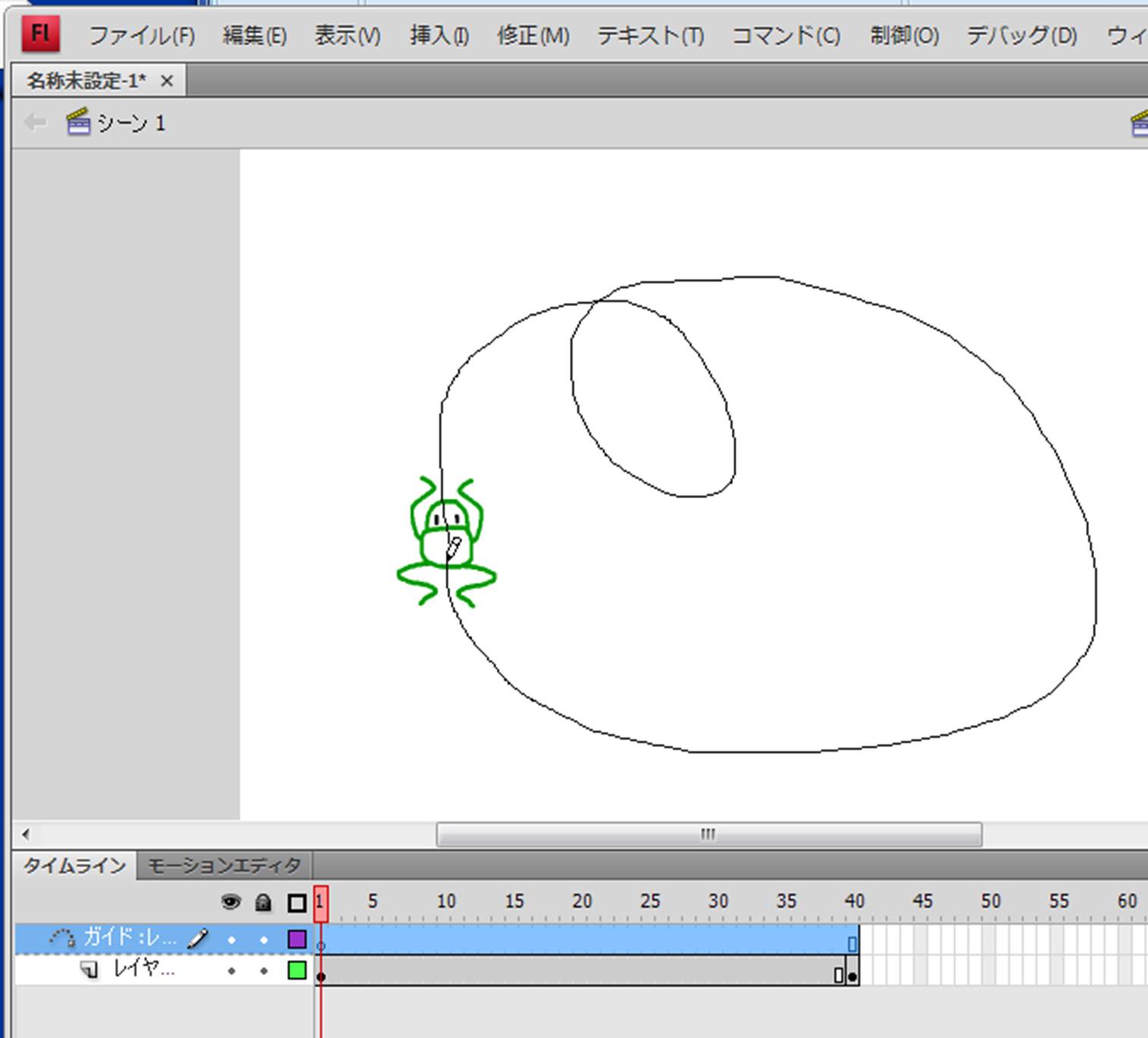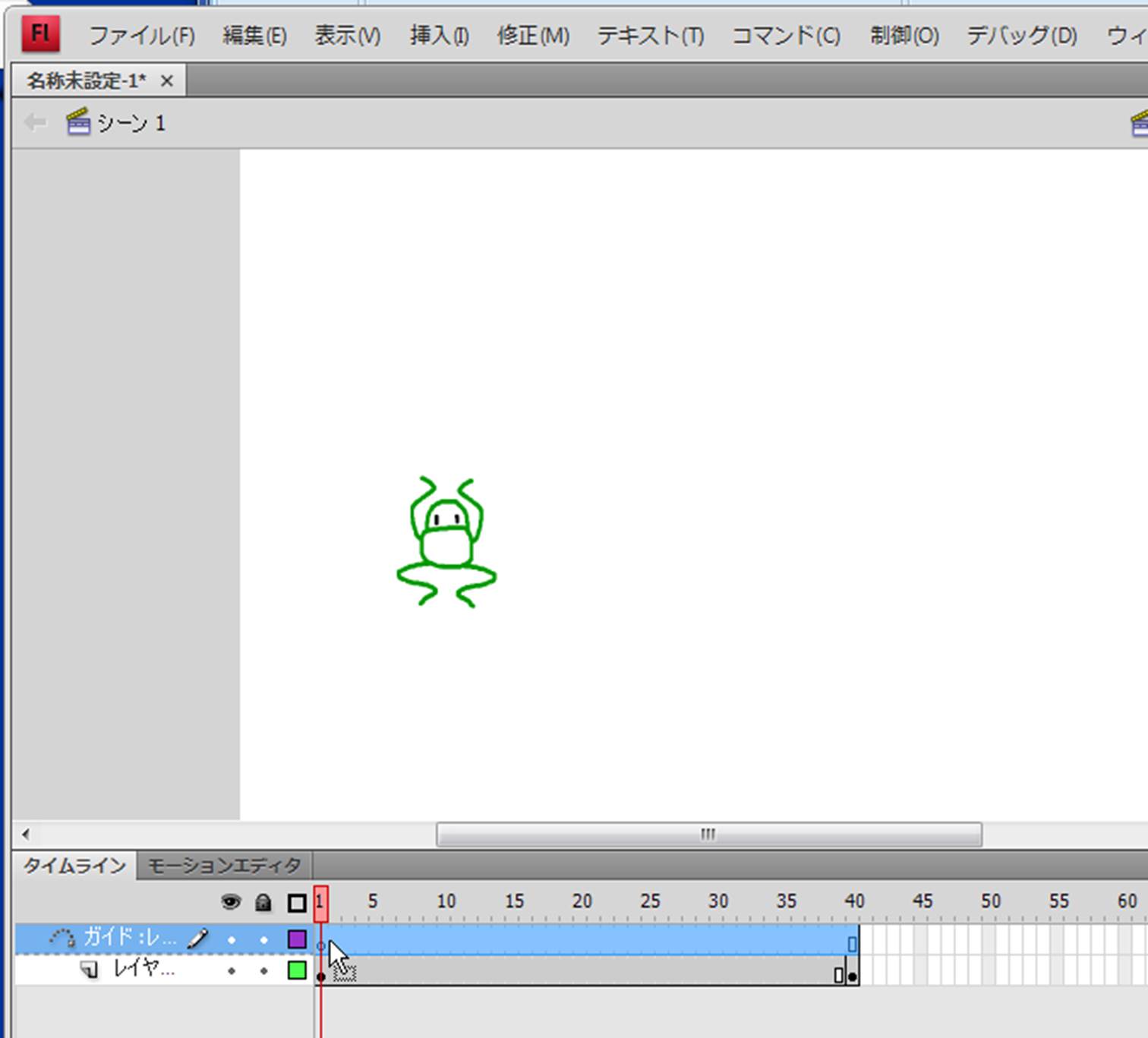 A1. タイムラインウインドウ上で,モーションガイドのレイヤー1をクリックします.