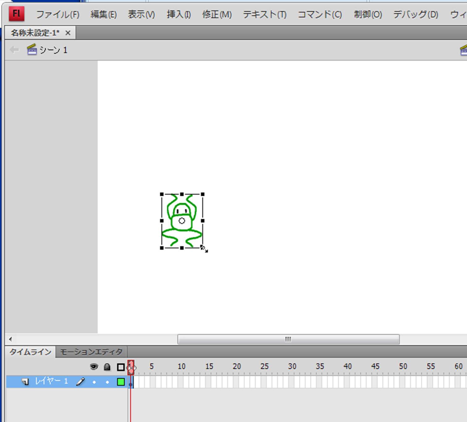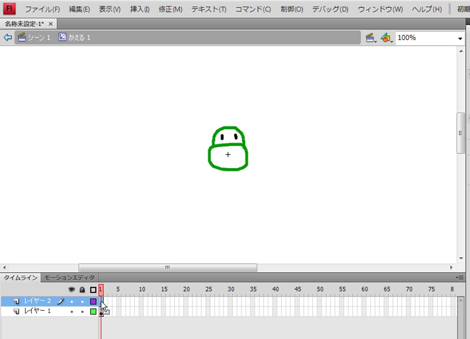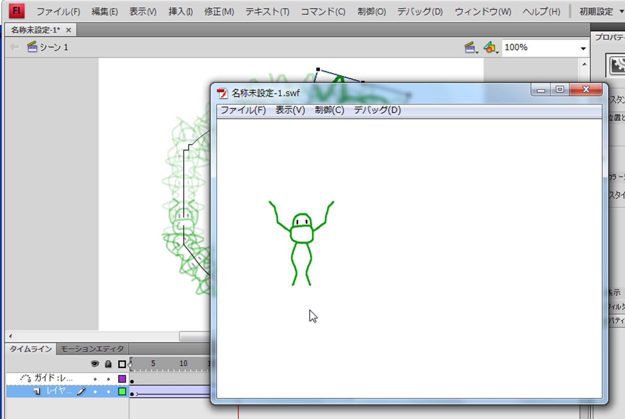 A1. タイムラインウインドウ上で,モーションガイドのレイヤー1をクリックします.