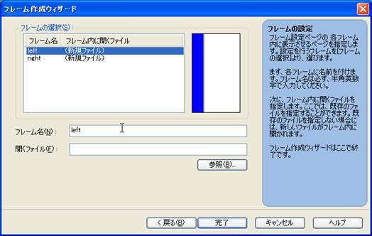 フレームはページを分割して表示するための枠にすぎません.まず,フレームの分割や大きさなどのフレームのレイアウトを決めて,各フレームの中に表示するWebページを作成し,また,リンク先やどのフレームに表示するかなどの設定をしていくことになります.