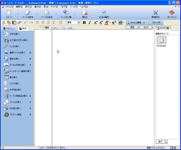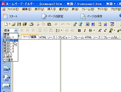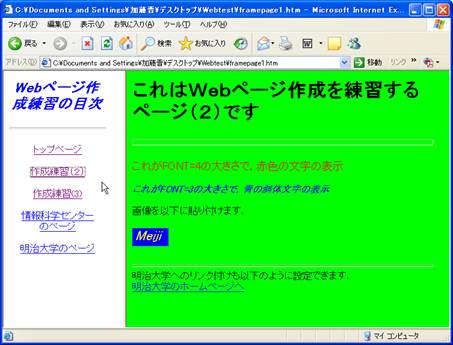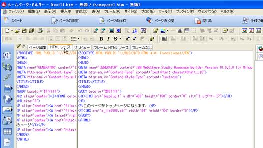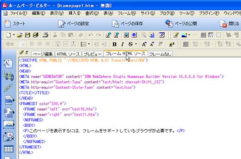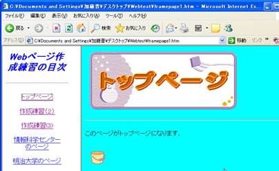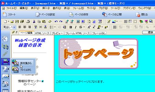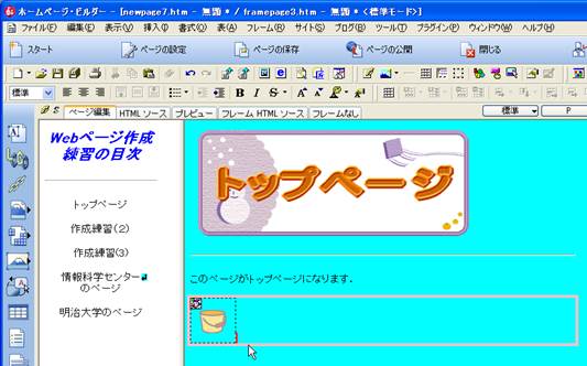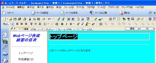 【参考】ホームページ・ビルダーによるフレーム作成(自習室での練習用):