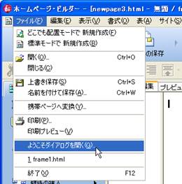 メニューバーのファイルから「ようこそダイアログを開く」
