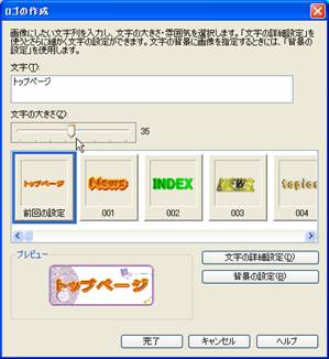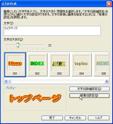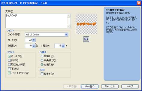 12. トップページと入力した文字をロゴ化してみましょう.ロゴ化したい文字を選択し,左の「ナビメニュー」の中の「ロゴ(飾り文字)の挿入」を選択します.メニューバーの「挿入」から「ロゴ」を選択してもできます.字体の設定や背景の設定を行います.