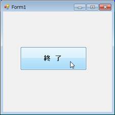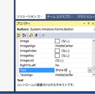 「Button1」というボタンのTextを(今の段階では”クリック”になっている文字)を”終 了”に変えることを表しています。すなわち、イベントが発生すると、Text の文字列が変化することになります。