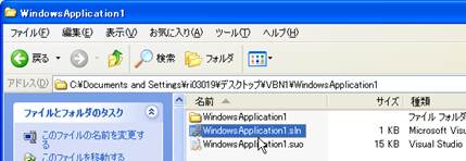 9.再編集をしてみましょう.保存してあるプロジェクトを開けば,先ほどのプログラム作成の続きを行うことがでます.また,フォルダからは,「WindowsApp1.sln」(もしくは1つ下のフォルダのWindowsApp1.vbproj)をダブルクリックして開くことができます.
