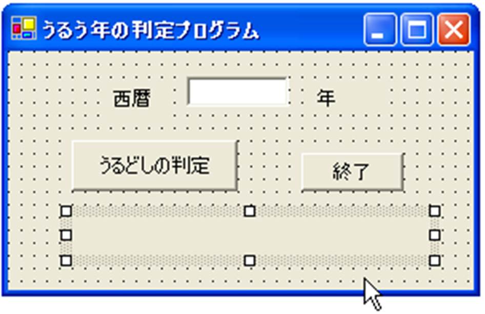 ここで,Label3.Textが判定を表示する部分ですから,そこにうるう年かどうかの文字列を代入します.