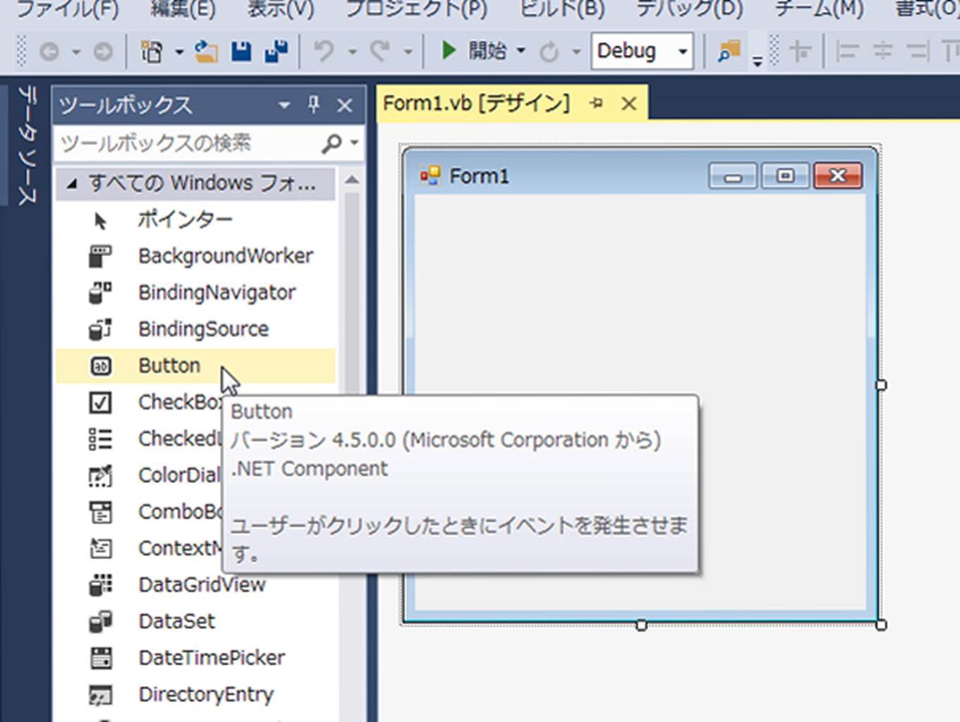 1.押しボタンを作りましょう.先に示したツールボックスからボタン(Button)