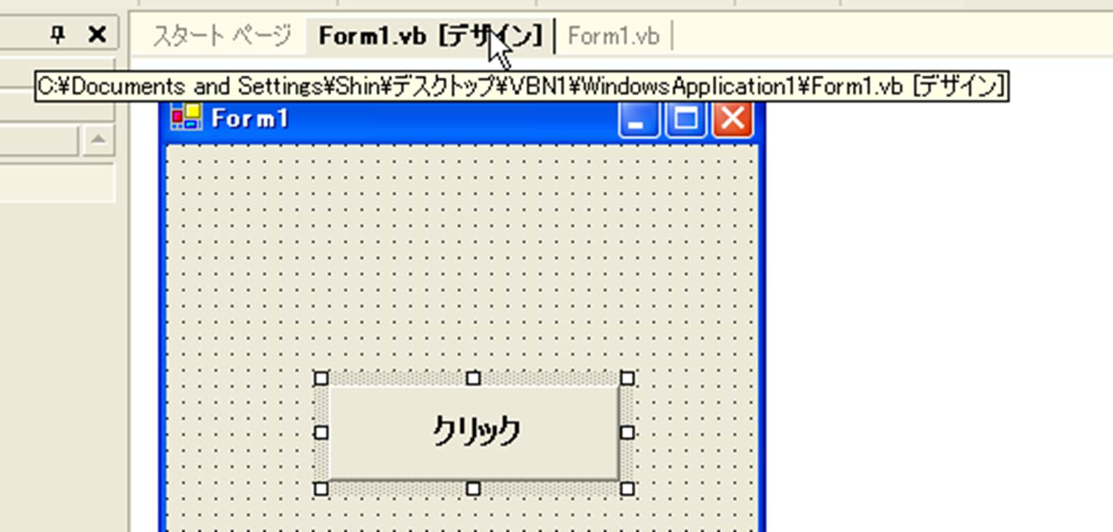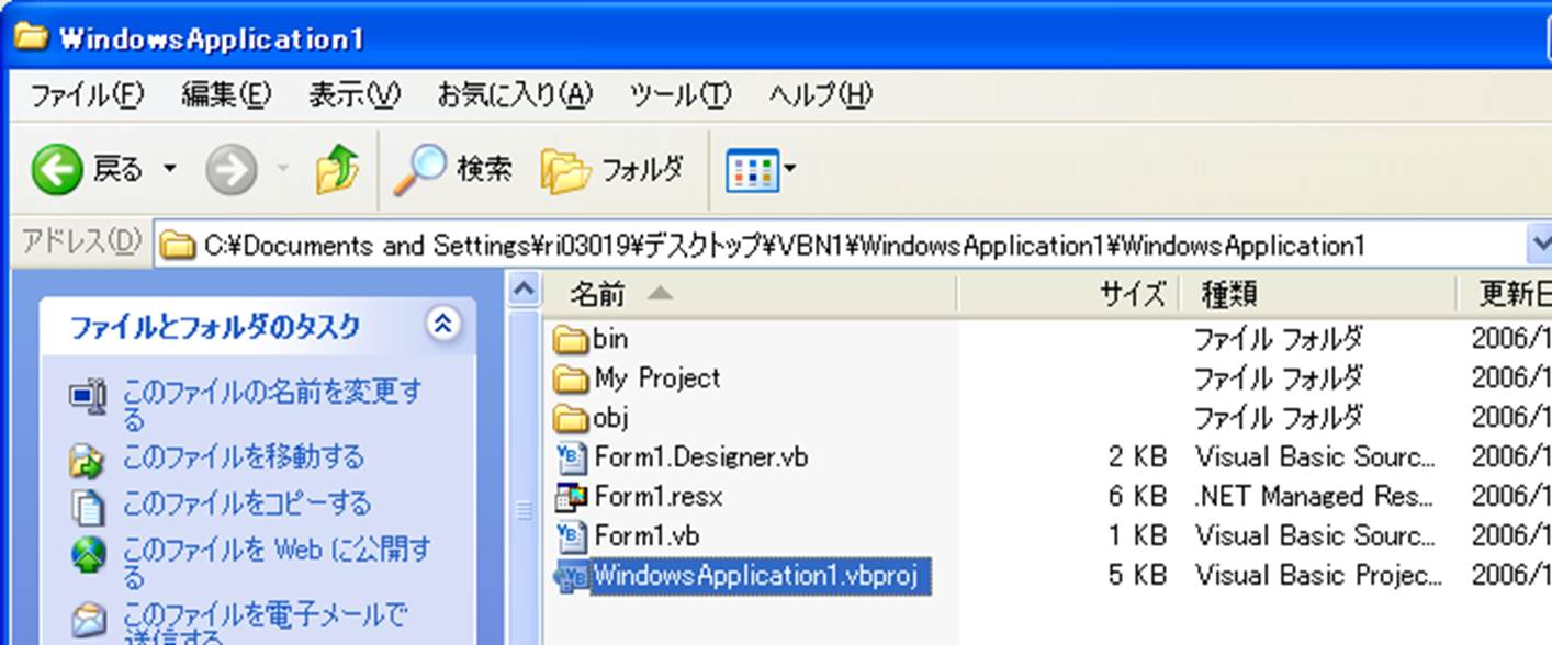 9.再編集をしてみましょう.保存してあるプロジェクトを開けば,先ほどのプログラム作成の続きを行うことがでます.また,フォルダからは,「WindowsApp1.sln」(もしくは1つ下のフォルダのWindowsApp1.vbproj)をダブルクリックして開くことができます.