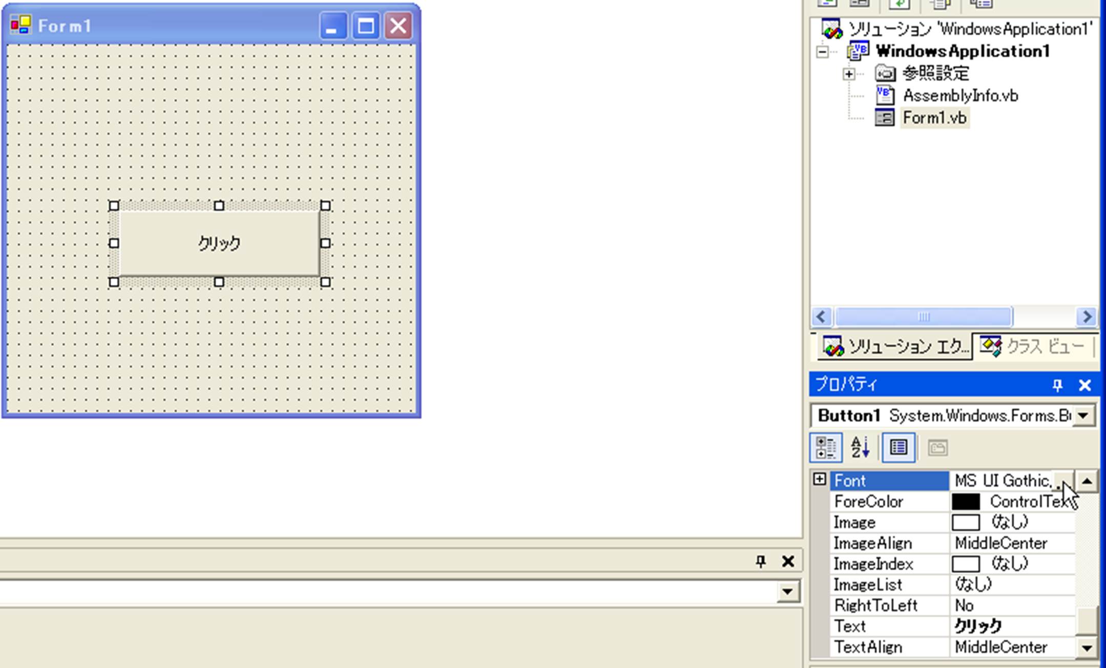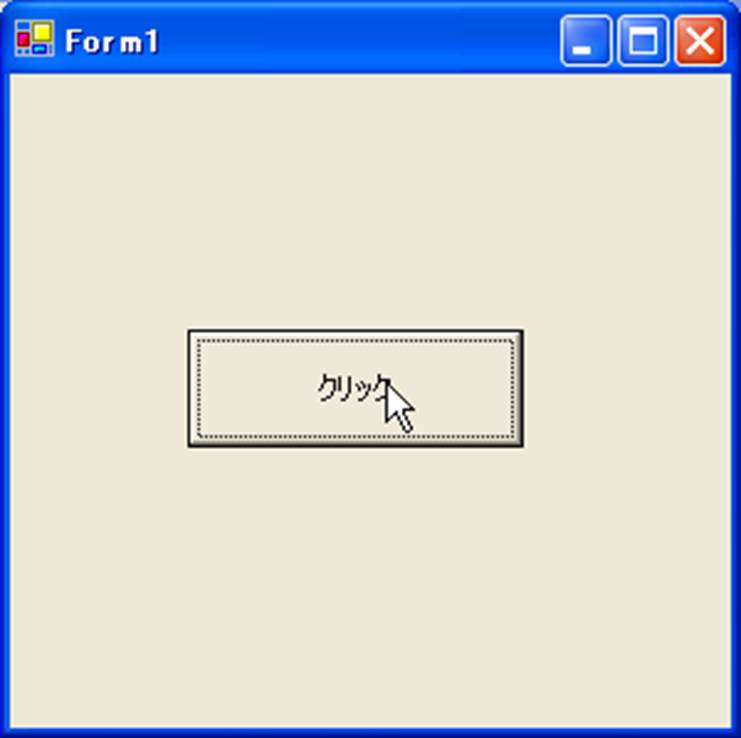 1) 以下のようにフォームデザイナにツールボックス上のButtonのツールを使ってボタンを1つ配置し,それぞれのプロパティで最初の表示文字を「クリック」にかえておく.これは,既に先ほどのプログラム作成で行っています.