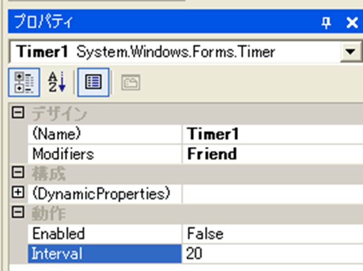 Timer関数のプロパティ設定で重要なものは,Enabled とIntervalです.
