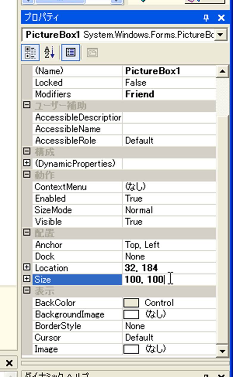 PictureBoxのプロパティ設定で重要な ものは,Sizeです.