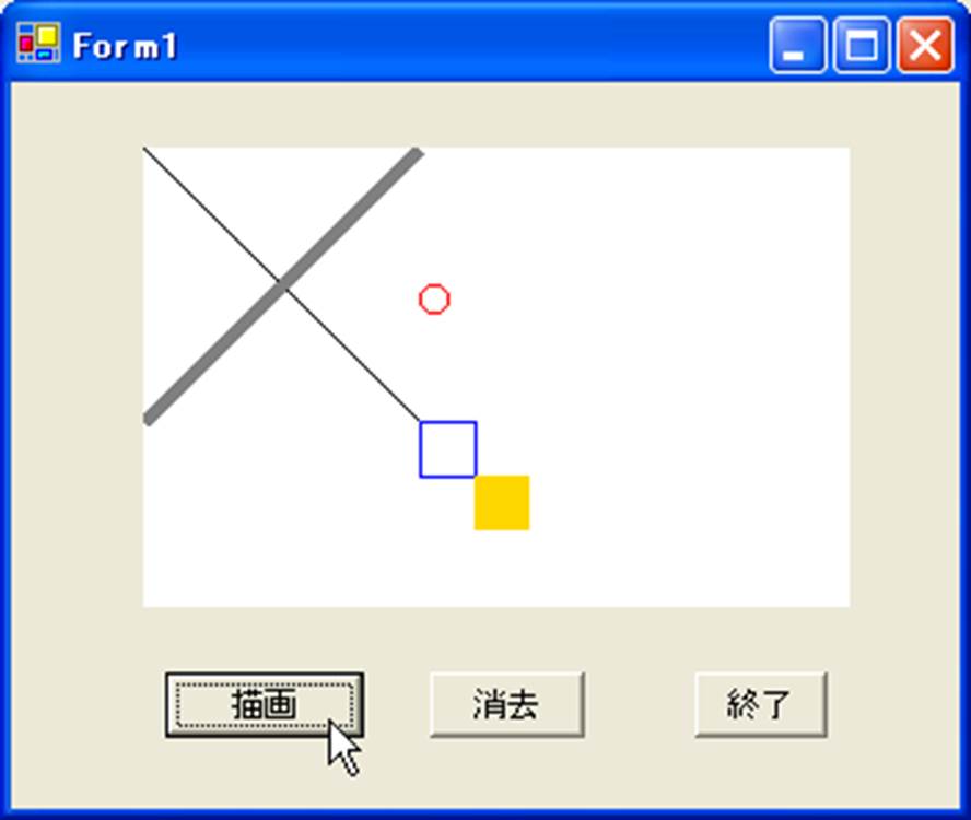 フォーム上に線などを描く場合には,グラフィックスオブジェクトを作成しておく必要があります.