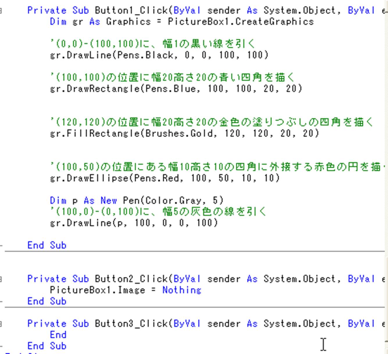 (この例では,Picture Box1にグラフィックスオブジェクトとしてgrを作成しています.)