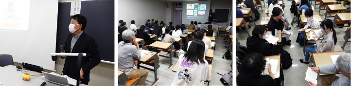 山口氏は「大学図書館を取りまく状況」と題し、現在自身が担当している仕事である、学習や研究を進めていくために必要な情報の使い方、探し方を支援する「学術情報リテラシー担当」についてお話いただきました。多岐にわたる仕事を担当していること、その中には講習会の実施やデータベース・Webサイトの管理、広報・リーフレットの作成なども含まれることを、説明いただきました。さらに、学術論文等のオープンアクセスのあり方やプレプリントの扱い方など学術情報の動向、AI技術等への対応といった図書館の現場で重要と考えられる事柄も紹介されました。
