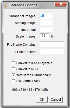 (1)「File → Import → Image Sequence」で、解析する画像を選択する。