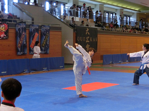 ▲真篠選手!柔軟性を生かした美しい蹴りを披露!