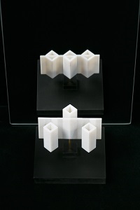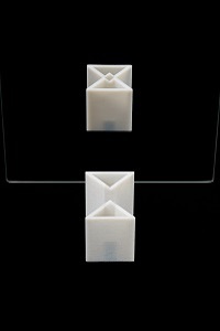 If we see the object directly, it consits of two circular cylinder mutually separated from each other, but in the mirror they intersect. This object is made by a 3D printer, but it can also be constructed by paper.