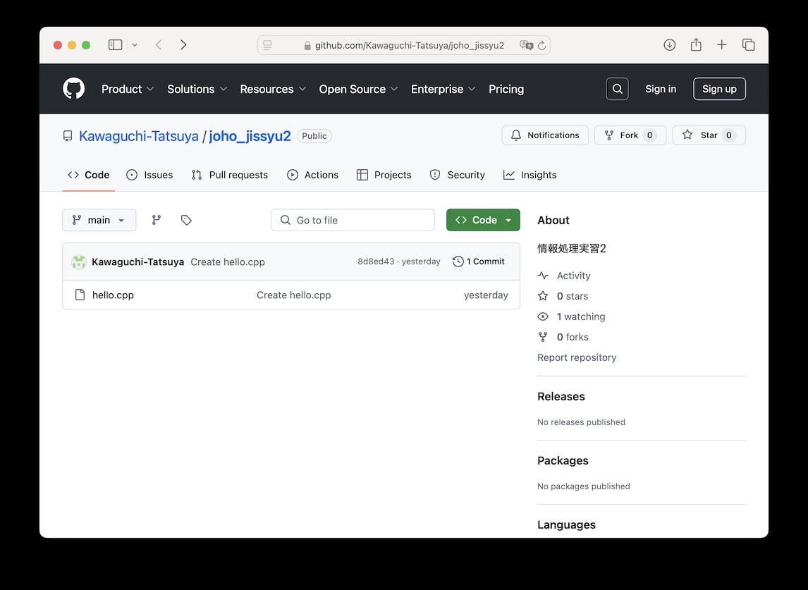 これは,授業用に作成した「joho_jissyu2」 という名前のリポジトリです.
