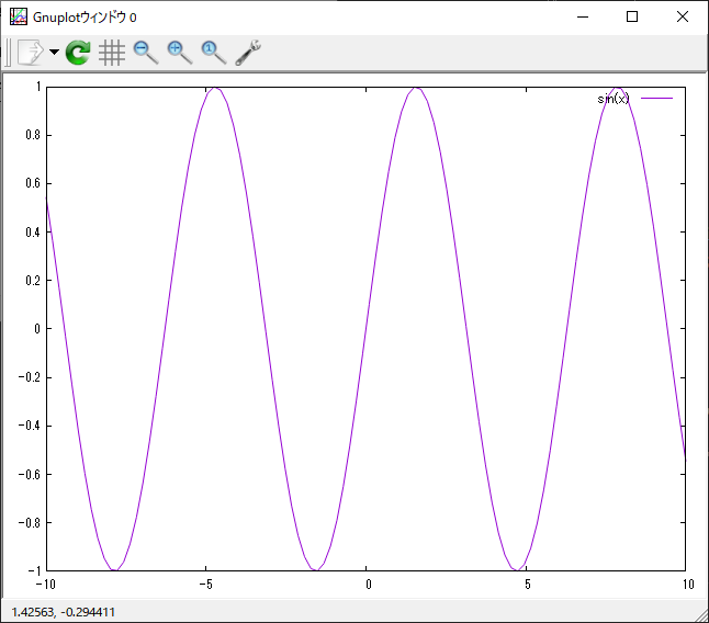 gnuplot の入力プロンプトで,以下のように打ち込んでみよう.