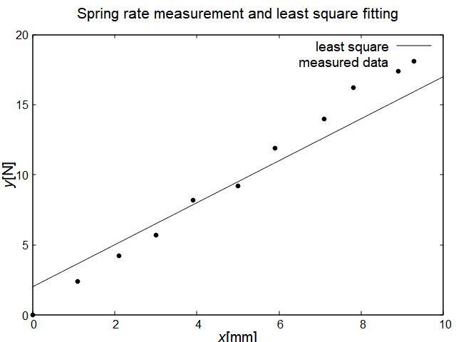 fprintf(fp, "set title 'Spring rate measurement and least square fitting'\n");