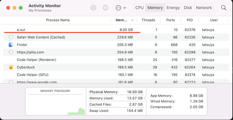 関数が終了してプログラムの実行が終了すると,処理がOSに移り強制的にメモリを解放するので,他のアプリには悪影響が及ばないはずである.