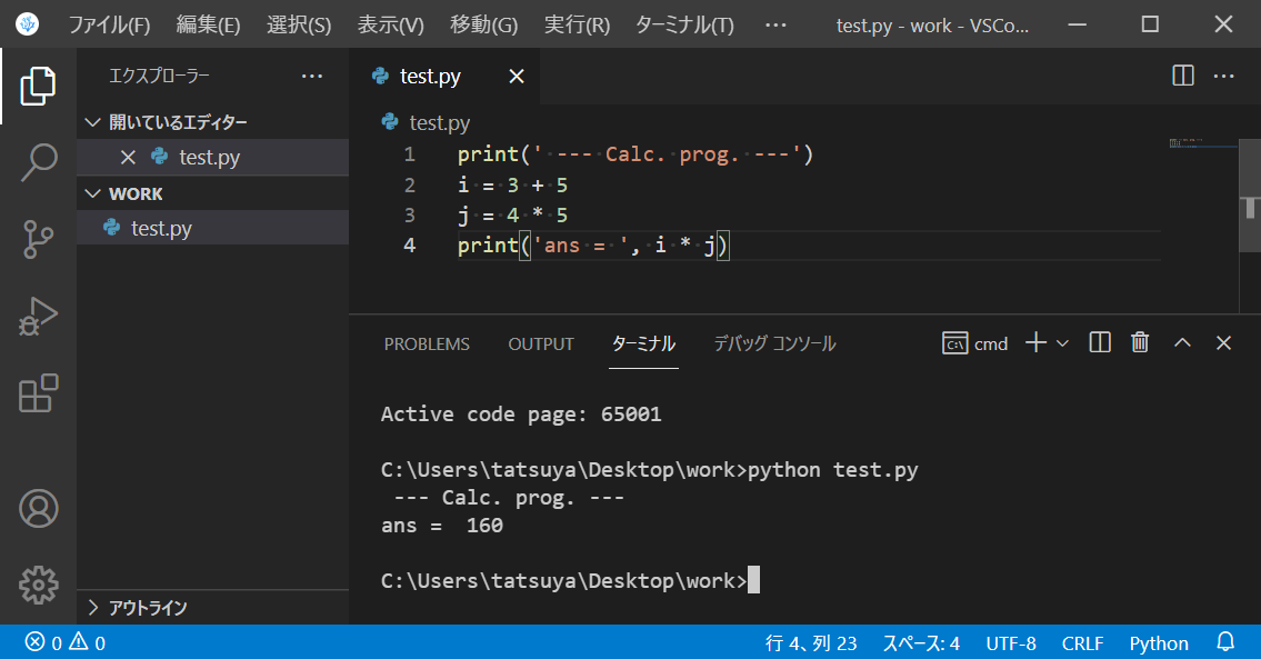 C言語の開発と同様,まず作業フォルダを開き,拡張子を.pyとしたソースファイル(スクリプトファイルともいう)を作成し保存する.