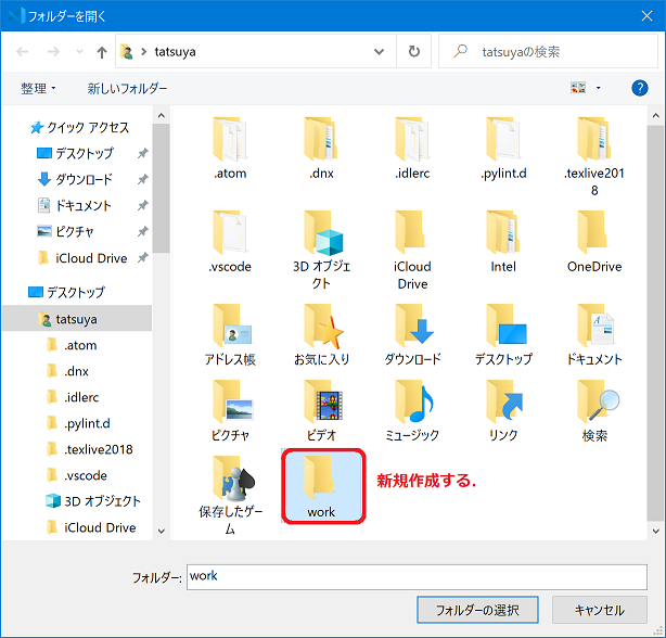 この例では,ユーザーのホームディレクトリの下に「work」というフォルダーを新規に作成している.