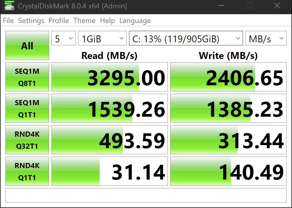 参考までに,PCに内蔵されている高速ディスクの性能は以下のとおりである.