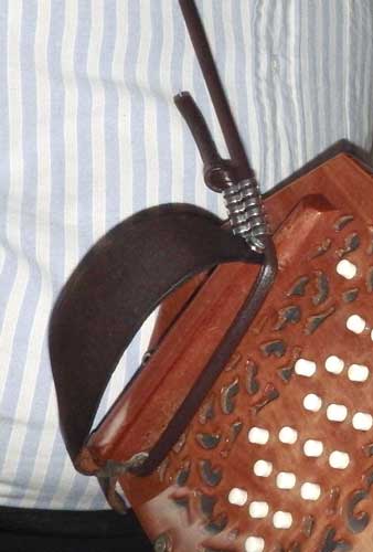 コンサーティーナを歩きながら、あるいは踊りながら弾くときに使うと便利な「ひも」です。売ってないので、自分で作りました。2014-5-5