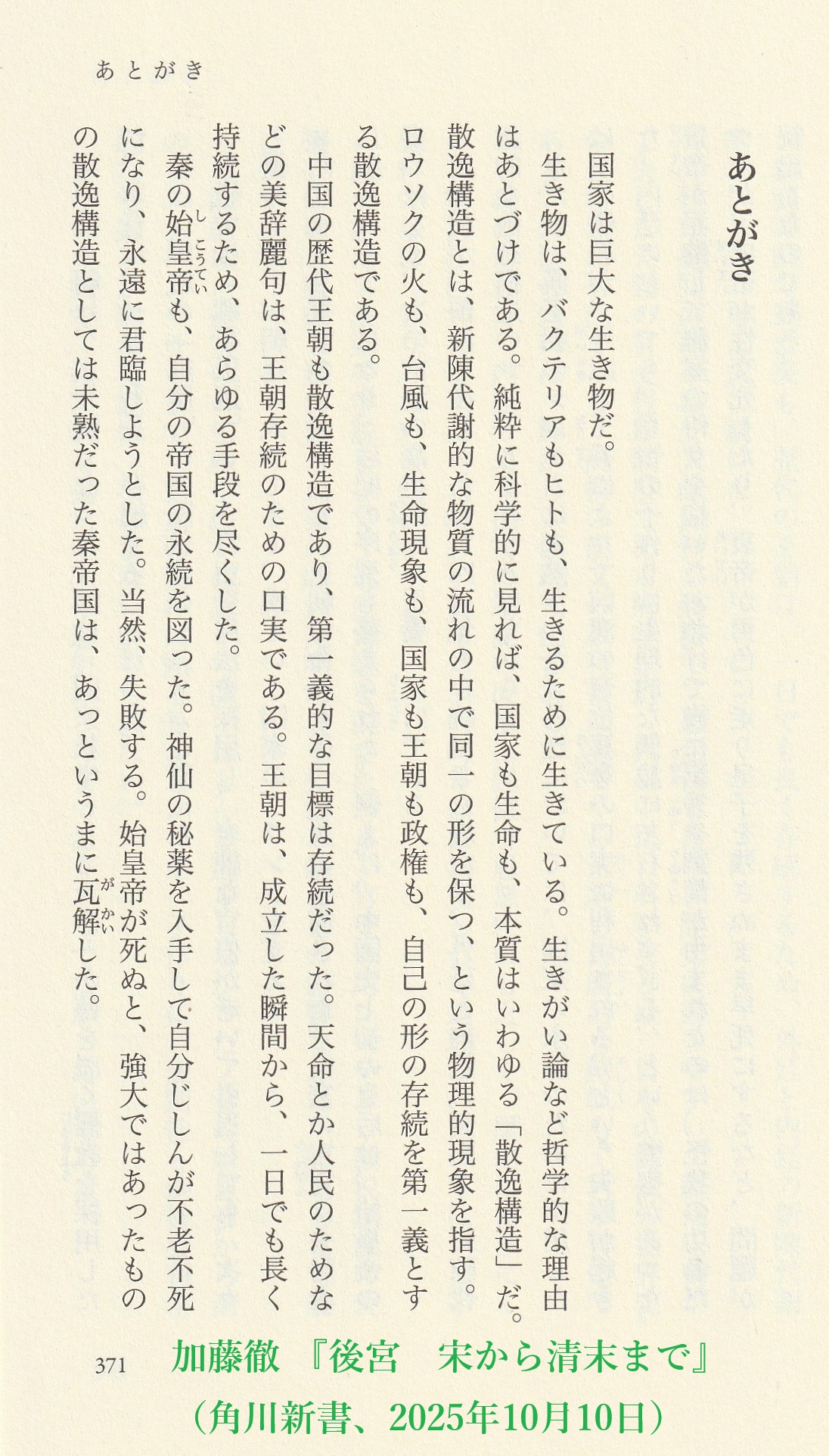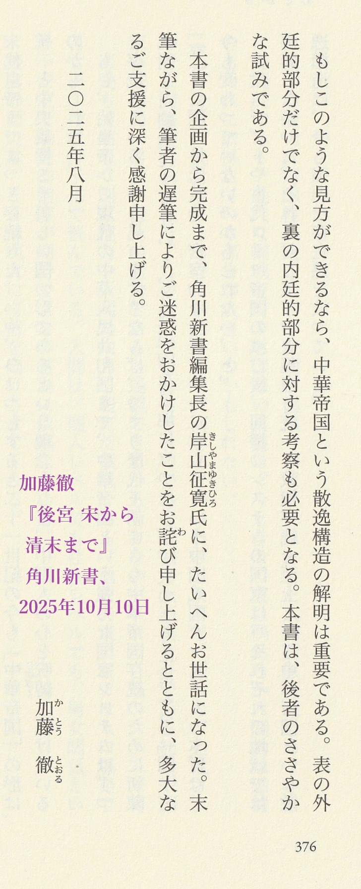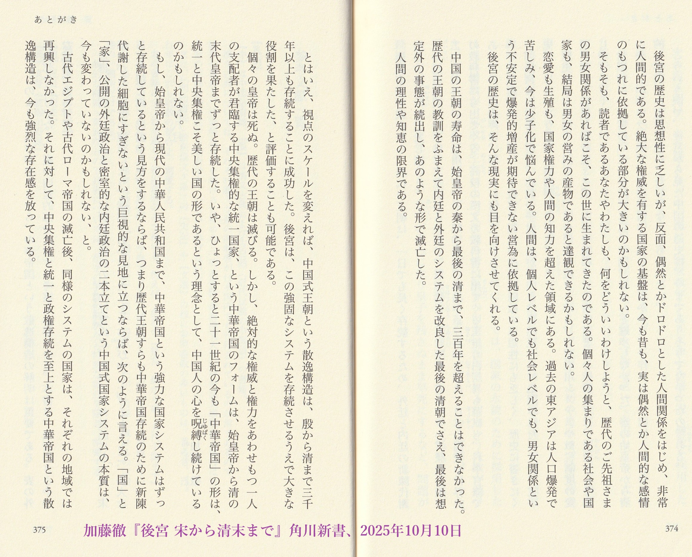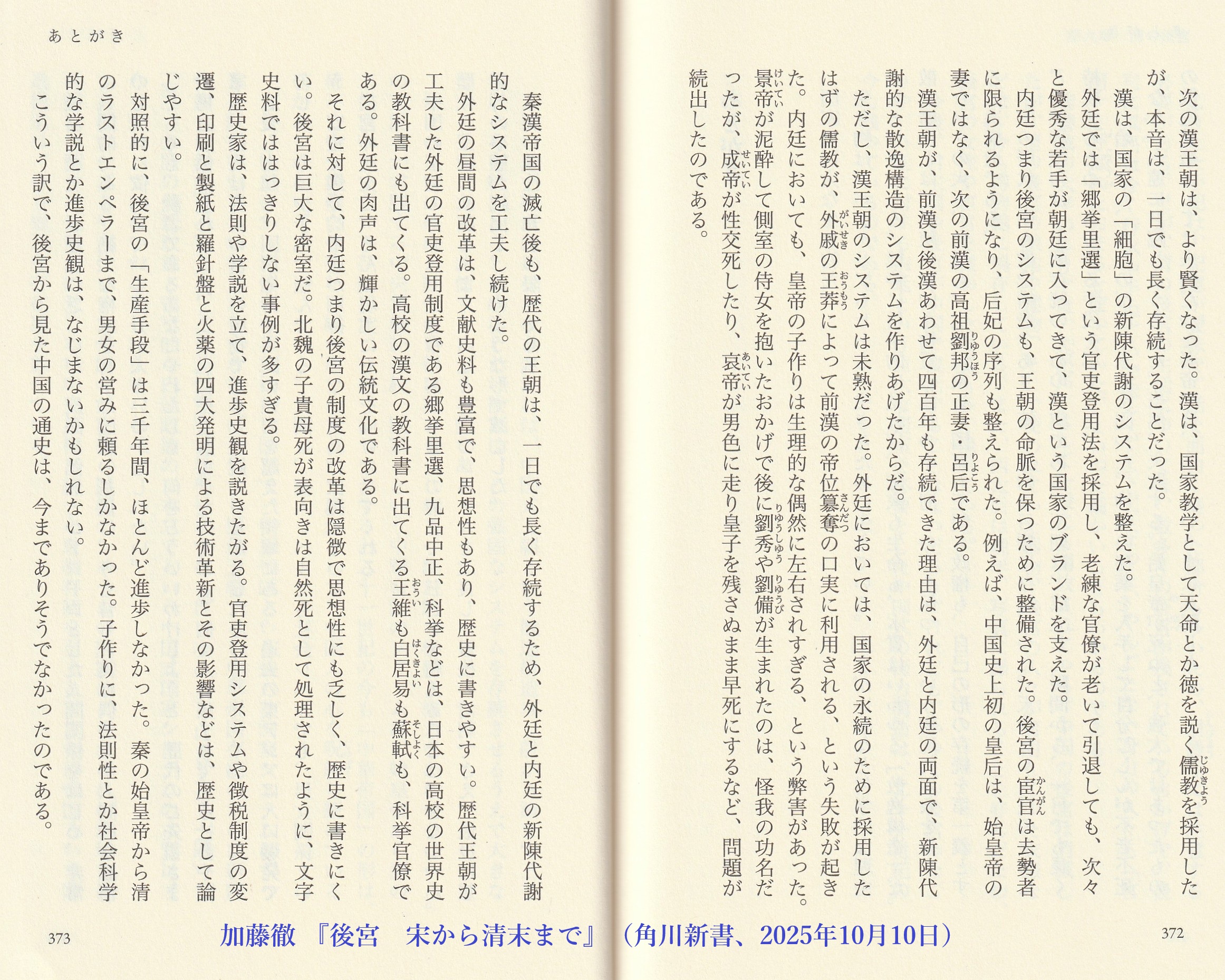以下は、加藤徹『後宮 宋から清末まで』のあとがき。