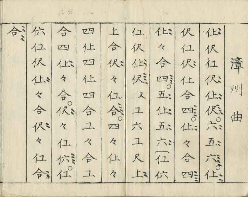 | 『明清楽譜』(1898) に載せる工尺譜。 |