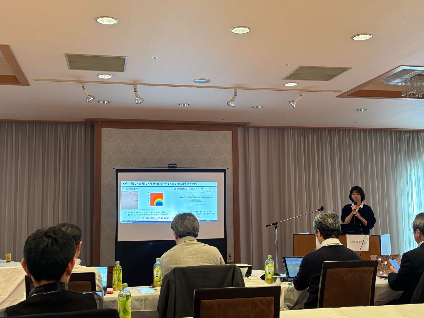 3月17~18日に湯の川温泉 花びしホテルにて行われた第31回ロボティクスシンポジアでM2の関和が研究発表を行いました.M2関和が「匂い源探索のための昆虫の匂い濃度依存的速度調整メカニズムのモデル化」のテーマの下,発表を行いました.解析内容やスライド構成を本番直前まで検討し,いつも以上に入念な準備で臨んだ学会でした.準備を通して,様々な視点から自身の研究に向き合うことができた良い機会となりました.いつも課題が残る質疑応答に関しても,いままで参加した学会の中で一番うまく回答することができ,修士2年間の成長を感じました.修士の研究活動の集大成として悔いなく締めくくることができました.
