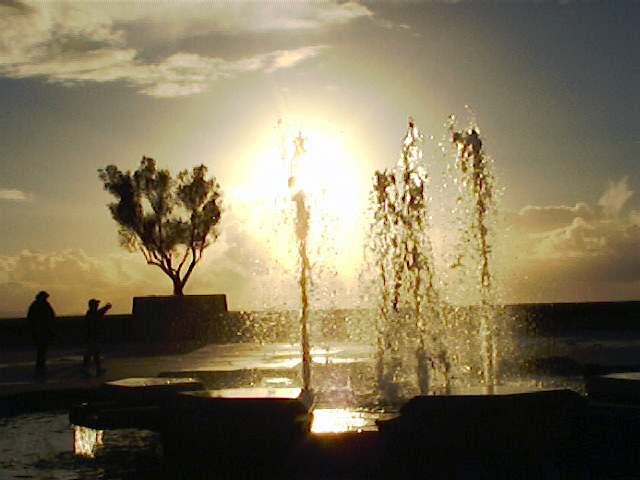 Sunset on Fountain at Berkeley, C.A., UC-Berkeley (by OTA Shozo)