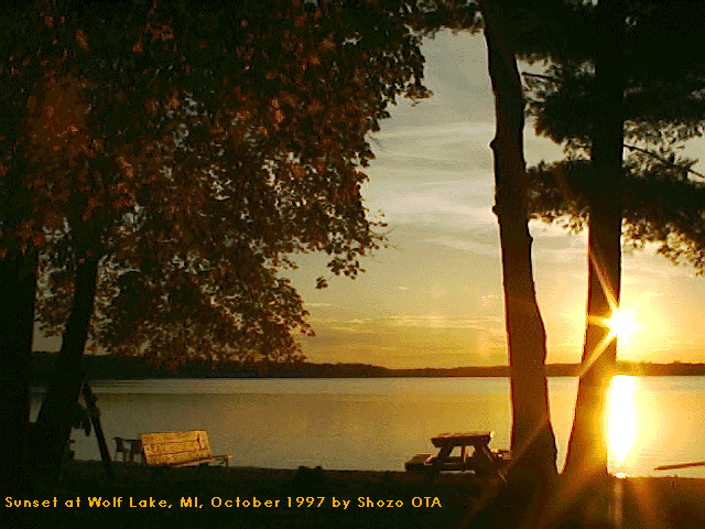 Sunset on Wolf Lake, Michigan (by OTA Shozo when visiting the University of Michigan Law School to give lectures on Japanese Law)